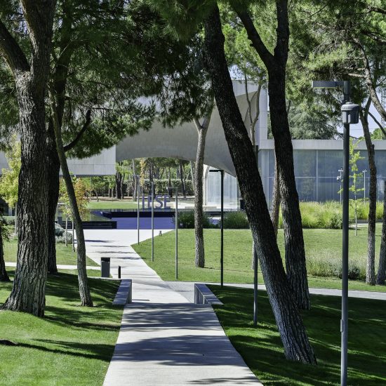 El proyecto de urbanización del Campus del IESE en Madrid tiene como objetivo reforzar la identidad del conjunto mediante la creación de un gran espacio ajardinado y la mejora de las conexiones entre edificios. La actuación busca integrar la arquitectura con su entorno natural, generando un campus más acogedor, representativo y funcional.