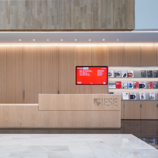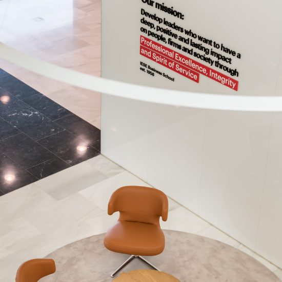 Estas actuaciones mantienen como premisa la creación de ambientes acogedores y profesionales, alineados con la identidad del IESE. Para ello se recurre a materiales nobles, y un diseño que cuida la calidad sensorial en los detalles.